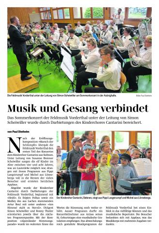 Der Kinderchor cantarini sang sich in die Herzen des Publikums und inspirierte auch die Feldmusik Vorderthal. Diese spielte gleich anschliessend an das Astrid-Lindgren-Programm ein Medley mit denselben Melodien.